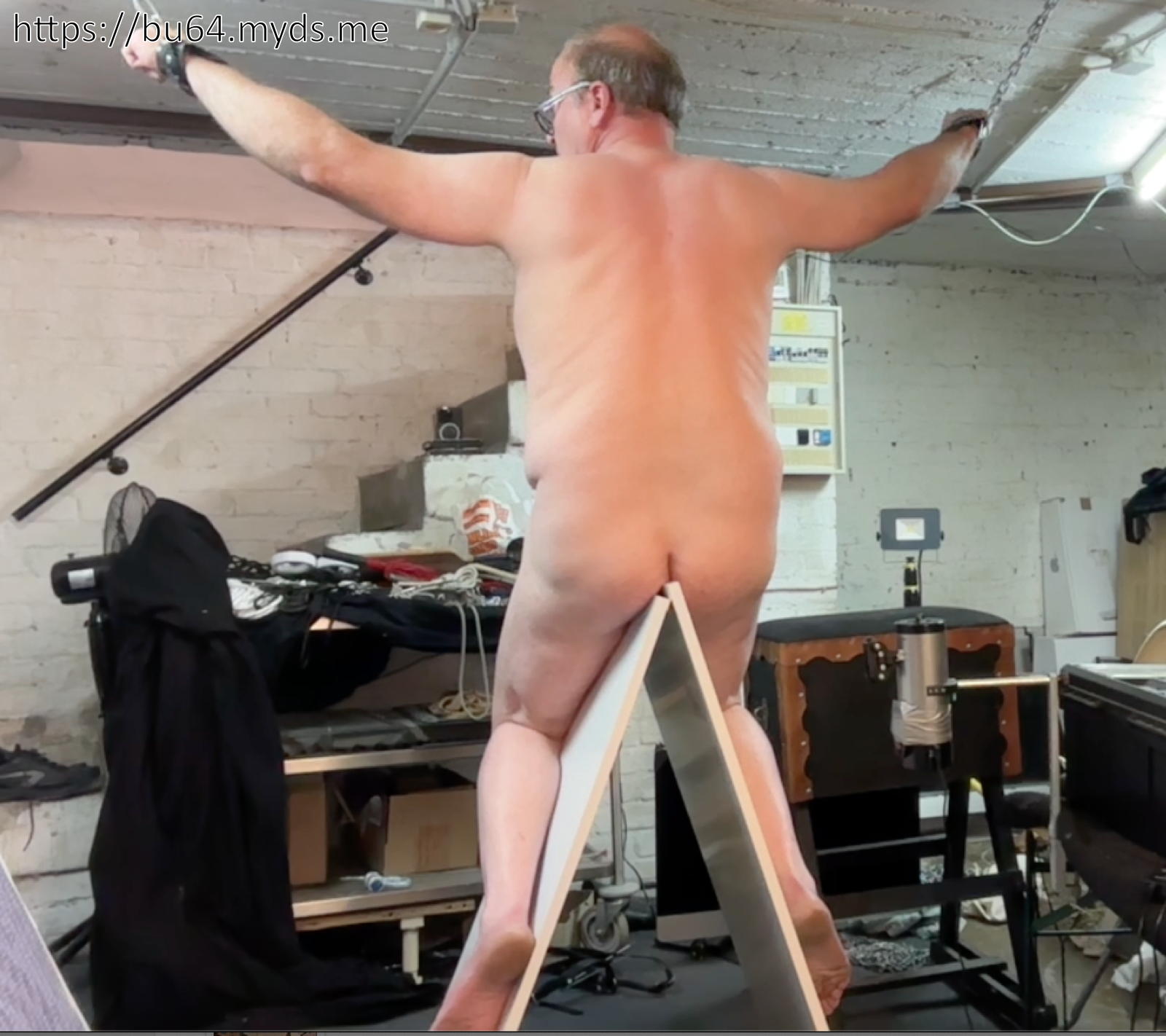 Zweiter Versuch (nur 2 Bilder), Platten weiter gespreizt, ca 40-45°. Kante drückt sofort schmerzhaft in den Schritt, habe das gleich nach dem Foto abgebrochen.