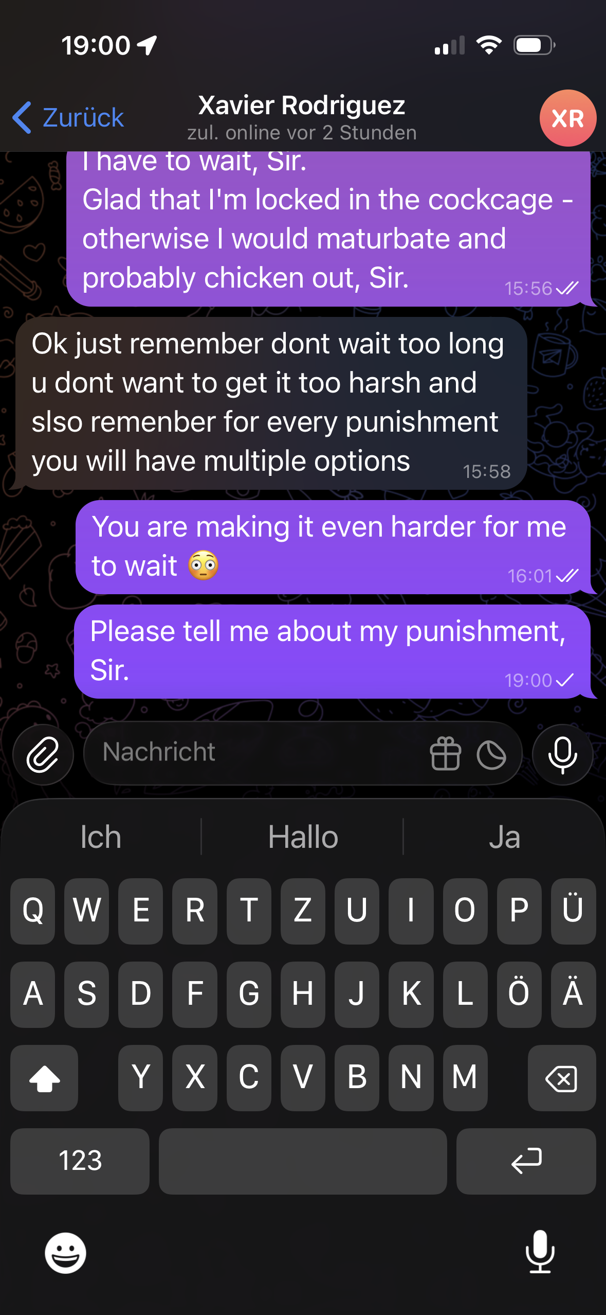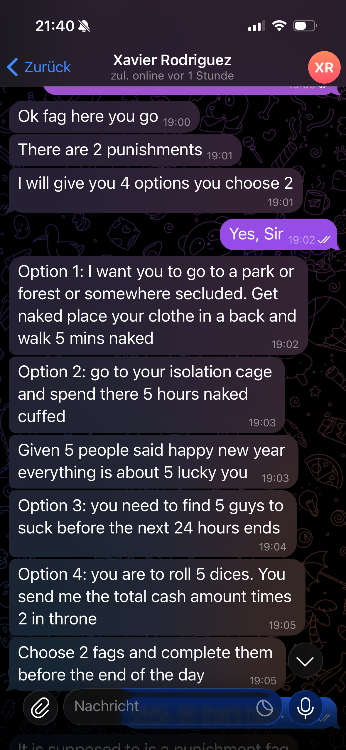Statt in der Ecke zu sitzen, sollte unbedingt die Besinnungszelle verwendet werden, bitte Deinen Blackmail Master darum, sonst tue ich das.