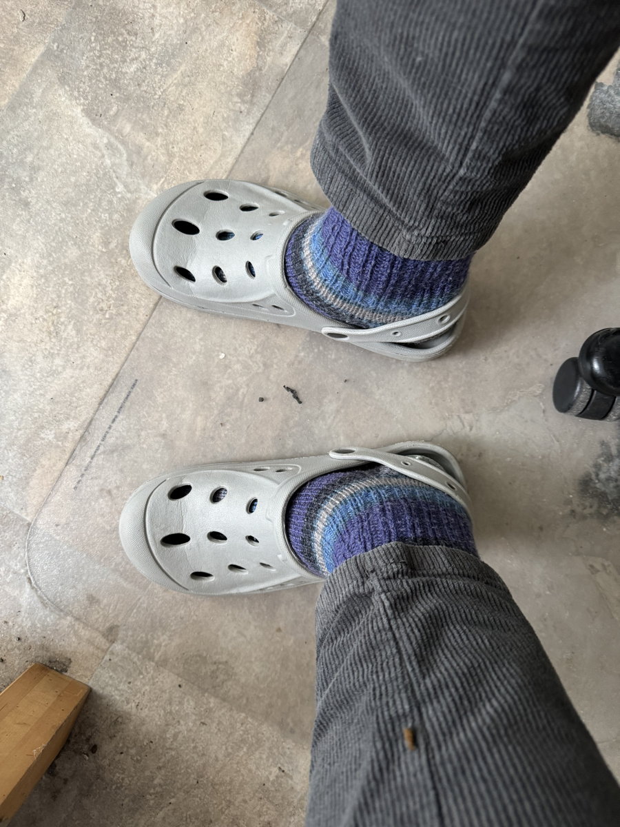 Tag 2 - 8.1.26 Los gehts. Ab in die Croqs. Da die Spitzen selbst beim sitzen spätestens nach 2 Stunden sehr nervig sind, wollte ich wissen, ob ich die nicht irgendwann mal ausziehen darf.